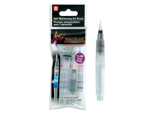 These handy, refillable brushes are designed to easily carry water on the road. The flexible brush tip can be unscrewed from the refillable reservoir. With the help of the comfortable handle, you can mix well and controlled, add light and shadow. Koi Water Brushes are available in three brush tip sizes for maximum versatility.